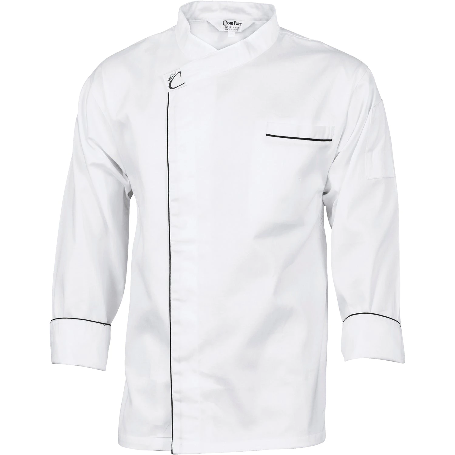 The Cool-Breeze Modern Jacket – Long Sleeve 1124 combines style and functionality with its 190gsm lightweight cotton construction. Designed with a mesh vent for enhanced breathability, this jacket features an open front secured by metal press studs, contrast black piping for a sleek look, a chest pocket, and a pen pocket on the left sleeve for added practicality.