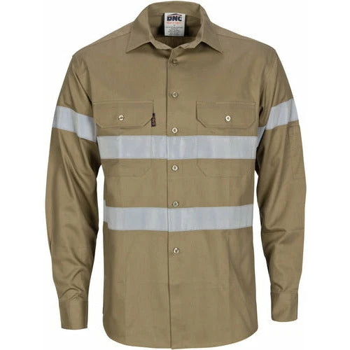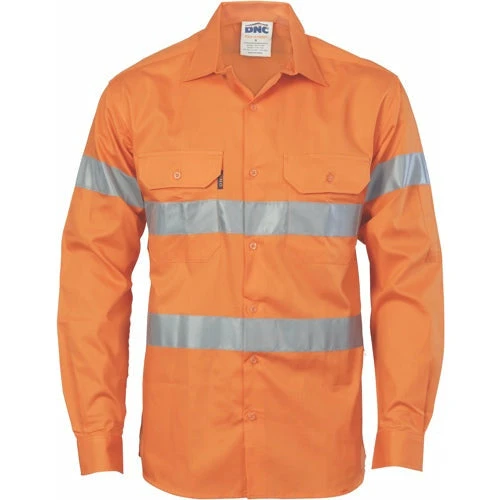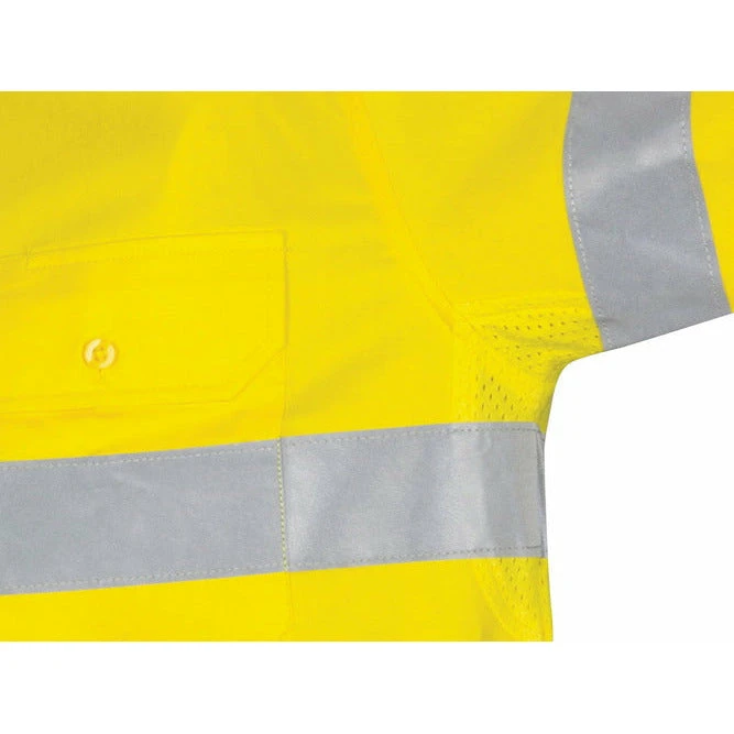Stay safe, comfortable, and visible with the HiVis Cool-Breeze Cotton Shirt with Generic R/Tape – Long Sleeve 3967, now available at DNC Direct.