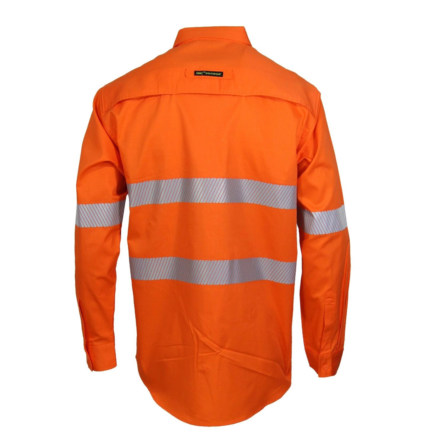 Stay cool, comfortable, and stylish with the HiVis Segmented Tape Coolight Shirt. Made from 155gsm lightweight 100% cotton, this long-sleeve work shirt offers superior breathability, featuring underarm and upper back mesh air flow venting to keep you cool in warm conditions. The hoop pattern segmented reflective tape is designed to reduce heat build-up, improve flexibility, and ensure high visibility. Complete with twin summary-down flap chest pockets, this modern and stylish shirt is both practical and comfortable for long workdays.