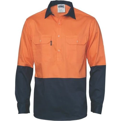 Why Choose the HiVis Two Tone Closed Front Cotton Drill Shirt – Long Sleeve 3834?