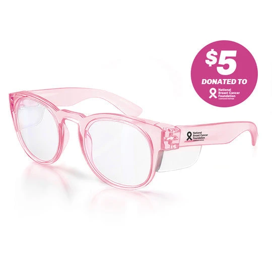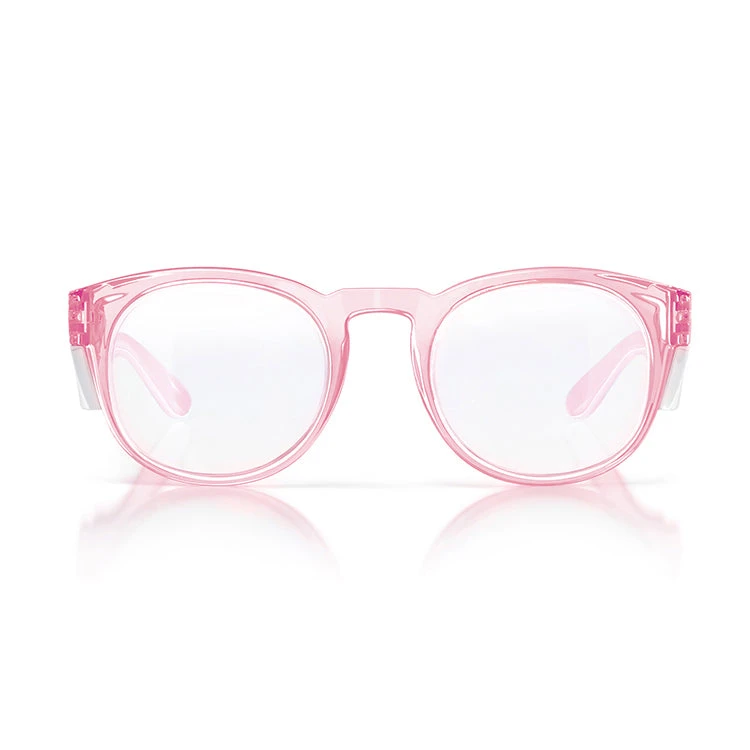 The Safe Style CRPC100 Cruisers combine a vibrant pink frame with clear lenses offering UV400 protection. These safety glasses meet AS/NZS 1337.1:2010 and ANSI Z87.1+ standards, providing a stylish yet protective eyewear option. Designed for comfort and versatility, they are perfect for both professional and casual use.