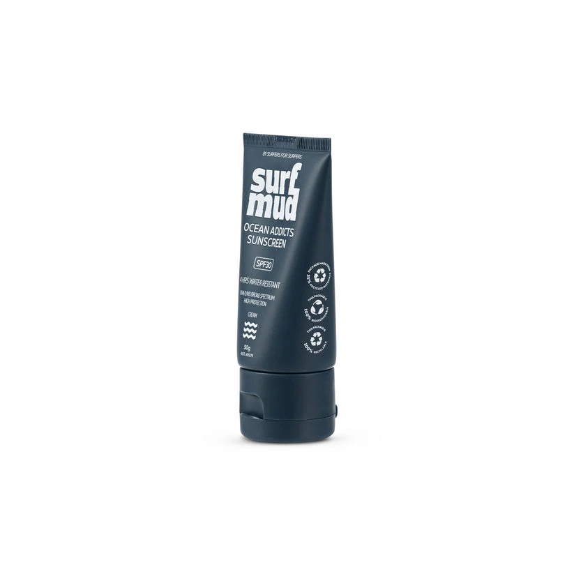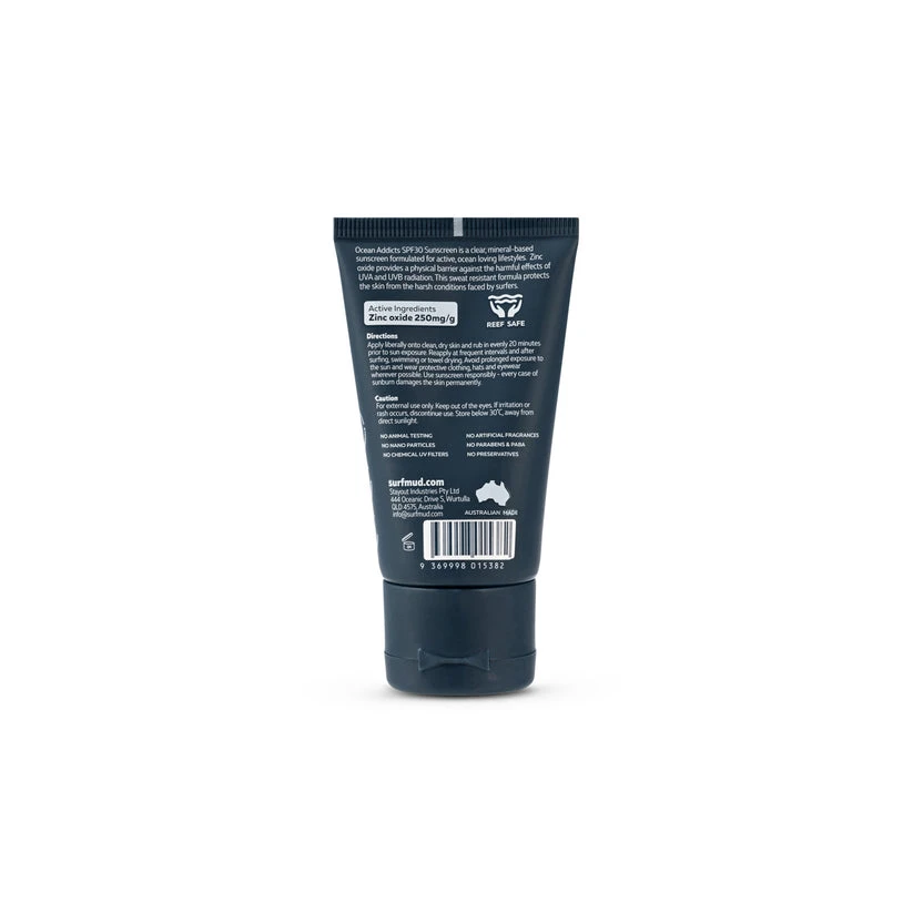 The Ocean Addicts SPF30 Sunscreen is specially formulated for ocean sports enthusiasts who demand top performance. Evolving from the trusted ‘Surfmud the Lotion’, this sunscreen delivers uncompromising in-water performance. With 25% Zinc Oxide (non-nano), it offers broad-spectrum protection while being gentle on the skin. Boasting 4 hours of water resistance, it’s perfect for surfing, swimming, and all ocean sports. The sunscreen comes in eco-conscious packaging that is 100% recyclable, 100% landfill biodegradable, and made from 35% post-consumer recycled (PCR) material.
