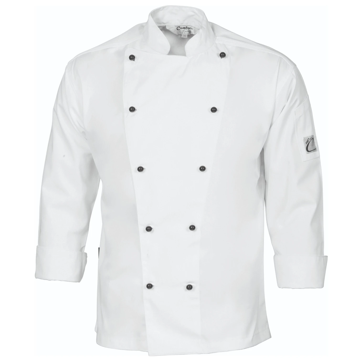 The Traditional Chef Jacket – Long Sleeve 1102 is designed for durability and comfort with its 200gsm fabric blend of 65% polyester and 35% cotton. This classic chef jacket comes with 10 matching color summarys and includes a convenient pen pocket on the sleeve, making it both practical and stylish for any kitchen environment.